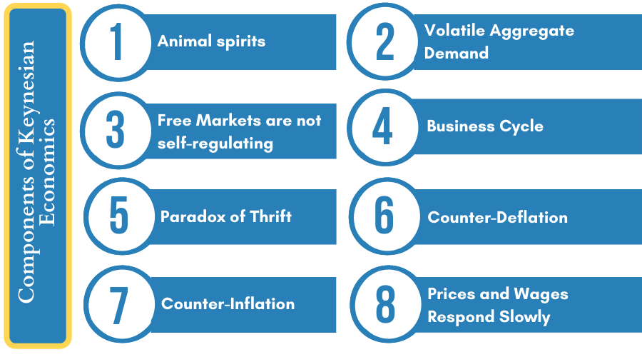 The idea of Keynesian economics is fundamentally structured on the basis that weak aggregate demand can lead to periods of sustained unemployment. Keynes argued that this could be combated through an increase in government spending to help stabilize the economy. However, there are many other components to his argument, such as:
